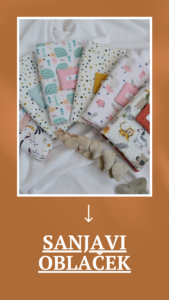 Sanjavi oblaček vam ponuja unikatne in personalizirane izdelke za vaše malčke. Med izdelki boste našli  čudovite odejice, brisačke, blazine, torbice za pleničke, slinčke, spalne maske (za mamice). Čudovite dekice iz muslina, zajčki Effike in zeliščne blazine, ki jih lahko personalizirate in naredite posebne vas bodo navdušili.