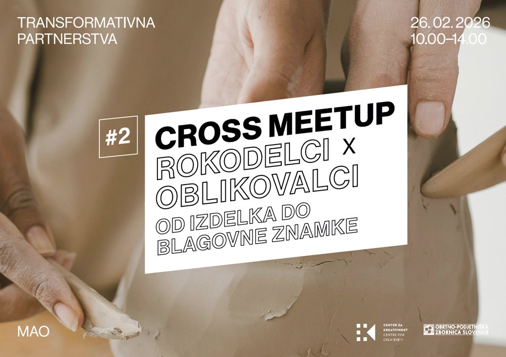 Center za kreativnost / MAO in Obrtno-podjetniška zbornica Slovenije skupaj s partnerji vabita na Cross MeetUp dogodek Rokodelci × Oblikovalci: Od izdelka do blagovne znamke, ki bo potekal v četrtek, 26. februarja 2026 v Muzeju za arhitekturo in oblikovanje (MAO) v Ljubljani.